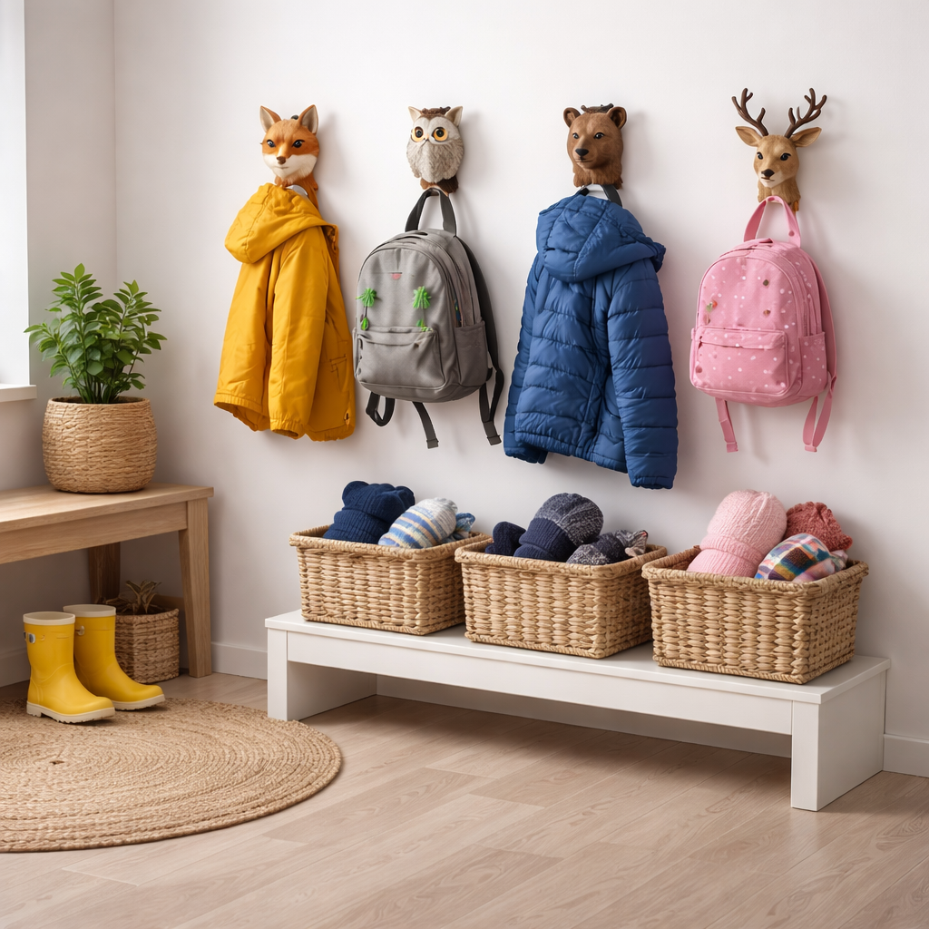 Et hjem med børn dør typisk af “ting uden hjem”. Hvis jakker, tasker og huer ikke har faste pladser, ender de overalt. Dyreknager gør det meget konkret: én knage = én plads.